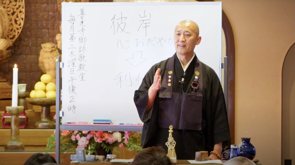 梅花流特派師範もお務めになられ全国を回られていた渡邉老師。御詠歌をお唱えになりながら、時にユーモアを交えて語られるお話はとてもわかりやすく、参列者一同を引き込み心に響くひと時となりました。